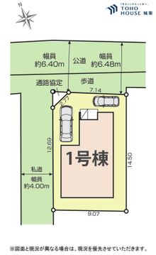 | 接道 | 角地 北東側幅6.4m (公道) 北西側幅4m (私道) |