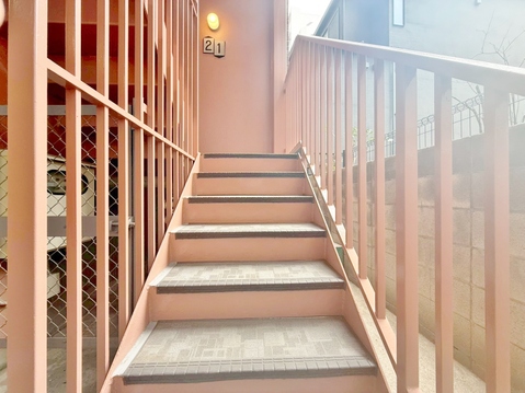 落ち着いた雰囲気の階段。手すりも常設しているので、ゆったりお使いになれます。