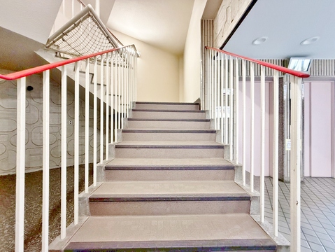 落ち着いた雰囲気の階段。手すりも常設しているので、ゆったりお使いになれます。