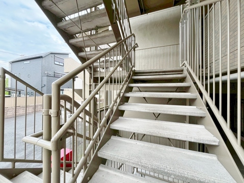 落ち着いた雰囲気の階段。手すりも常設しているので、ゆったりお使いになれます。