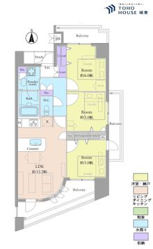 3LDK、専有面積62平米、バルコニー面積19.92平米